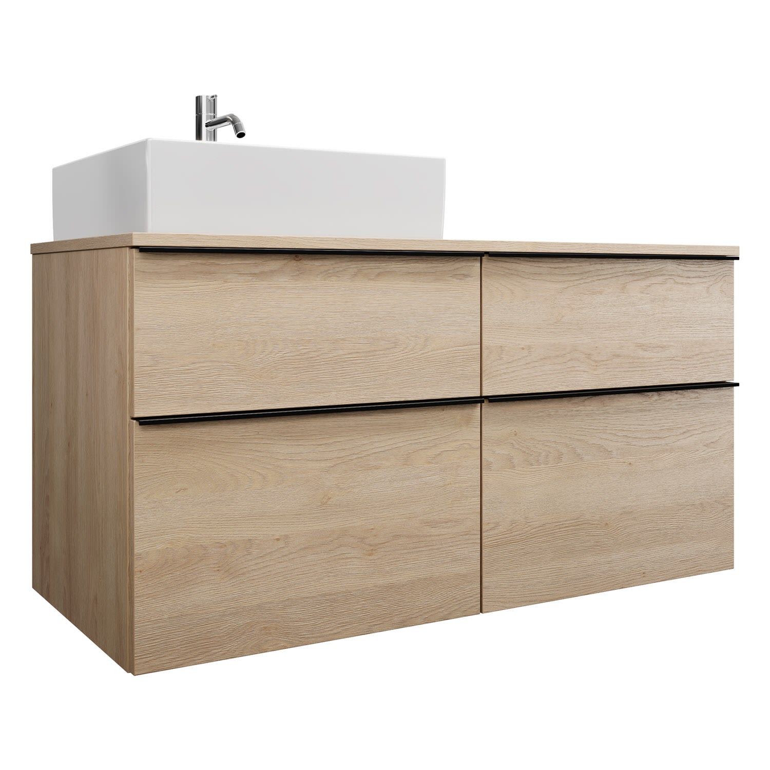burgbad Eqio Waschtischkombination mit Keramik-Aufsatzwaschtisch 120 cm, links, mit Griffleiste G0252, Badmöbel,