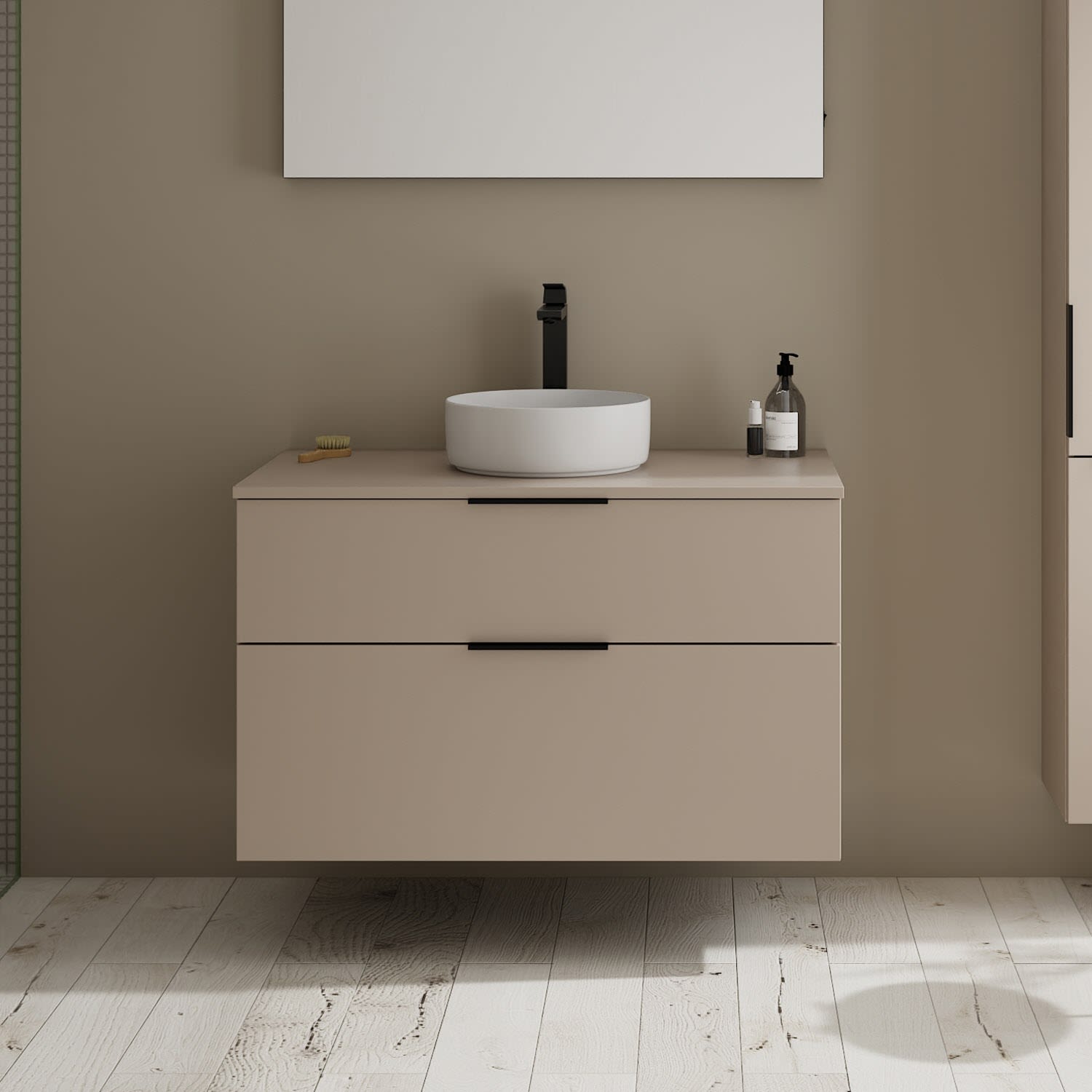 Aufsatzwaschtisch „Silenio“ 90 × 46 cm, ohne Hahnlochbohrung in warm grey 60, mit Perl-Effekt