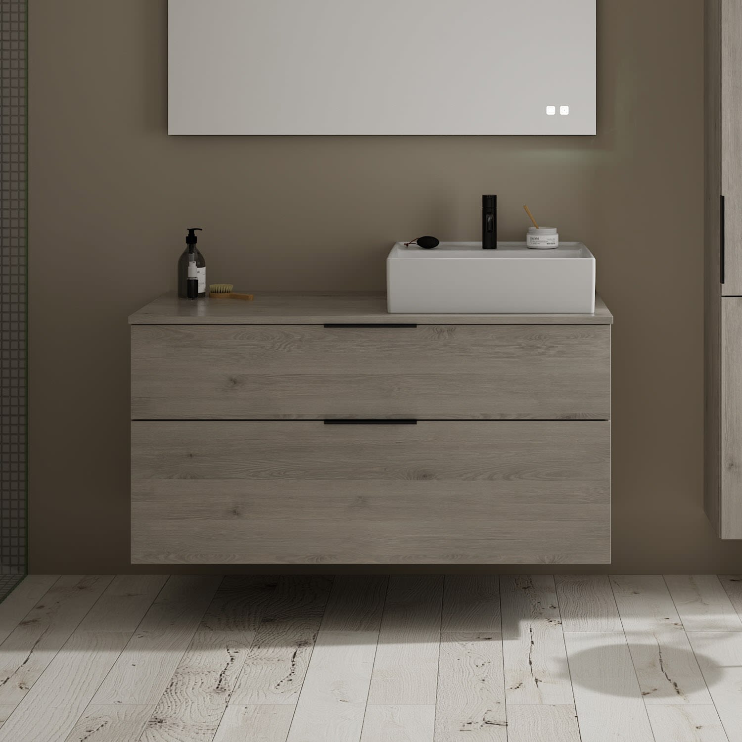 burgbad Eqio Waschtischkombination mit Keramik-Aufsatzwaschtisch 100 cm, mit Griff G0200, Badmöbel,