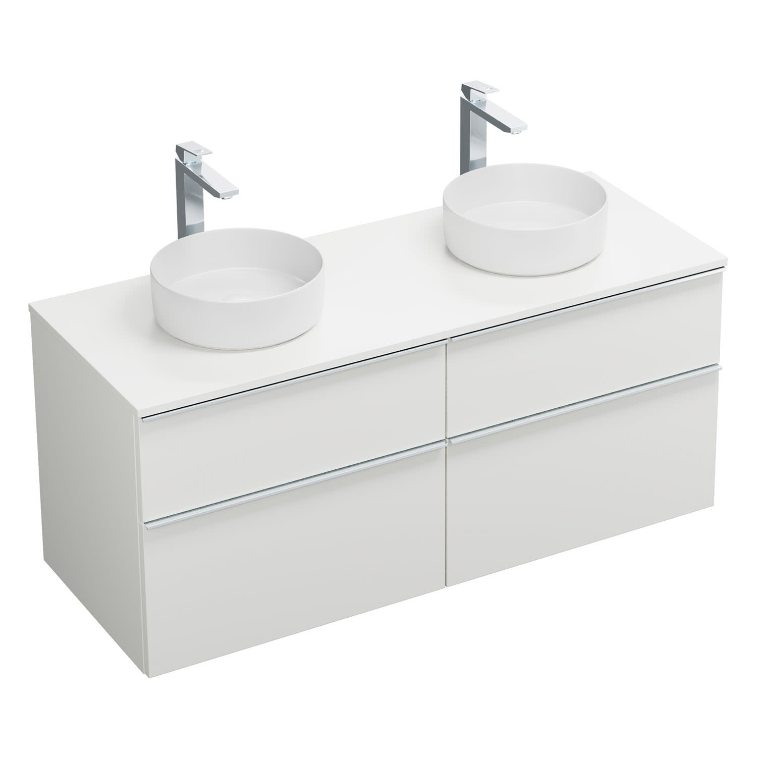 burgbad Eqio Waschtischkombination mit Keramik-Aufsatzwaschtisch 140 cm, links und rechts, mit Griffleiste G0251, Badmöbel,