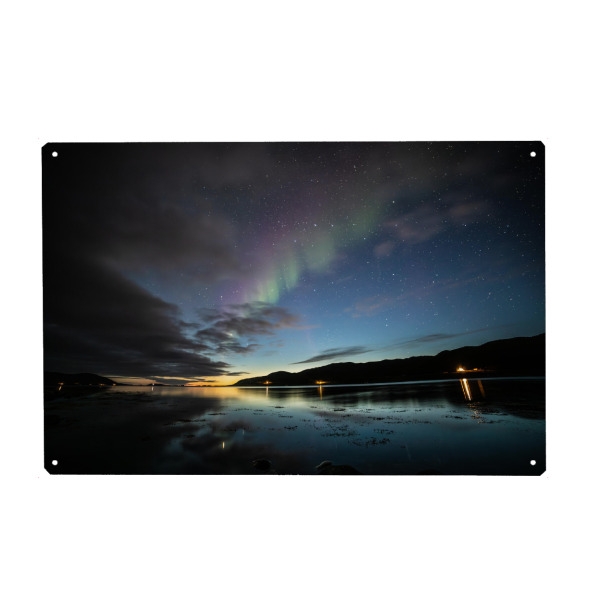 Metall Poster "Magic Night" artboxONE - Natur,Galaxy - Nordlicht,Polarlicht,Aurora borealis,Norwegen,Scandinavien,Nachthimmel,Sterne,Abendstimmung