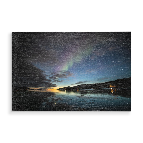 Holzbild "Magic Night" artboxONE - Natur,Galaxy - Nordlicht,Polarlicht,Aurora borealis,Norwegen,Scandinavien,Nachthimmel,Sterne,Abendstimmung
