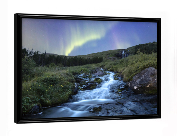 Poster mit schwarzem Rahmen "Nordlichter am Bunárfoss" artboxONE - Natur - Wasserfall,Nordlicht,Aurora,Borealis,Island,Landschaft,Nacht