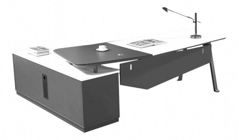 Chef Schreibtisch Schreibtisch Büroausstattung Büromöbel Bürotisch "Carolina" rechts schwarz-weiß Jet-Line