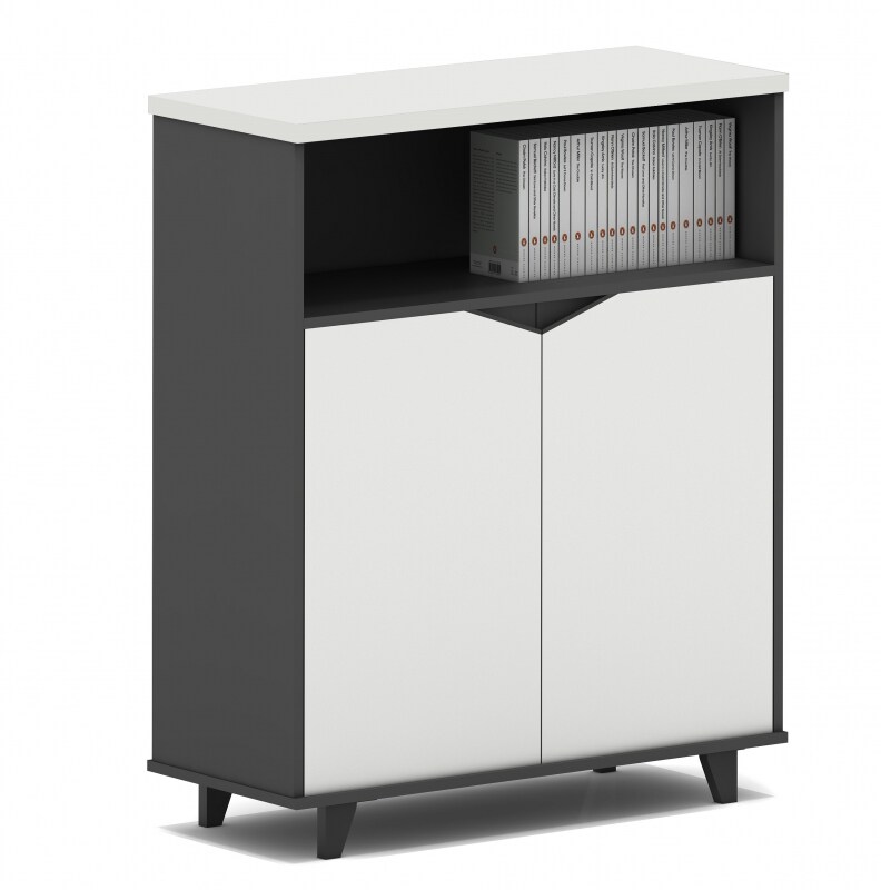 Jet-Line Aktenschrank Sideboard Schrank Büroschrank Holzschrank Wandschrank Seitenschrank Flügeltürenschrank Büroausstattung Büro schwarz/weiß Claudio