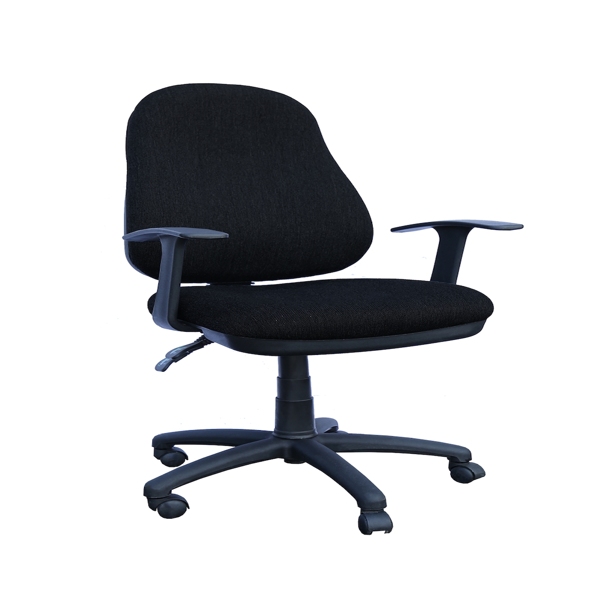 Bürodrehstuhl, hoch, gepolstert, T-Armlehnen, Kunststofffußkreuz, schwarz