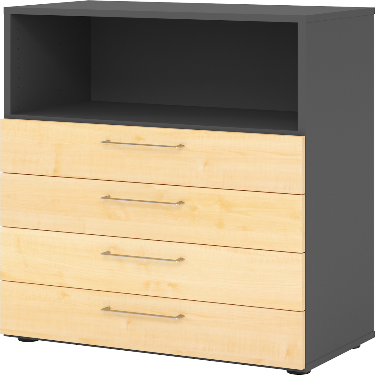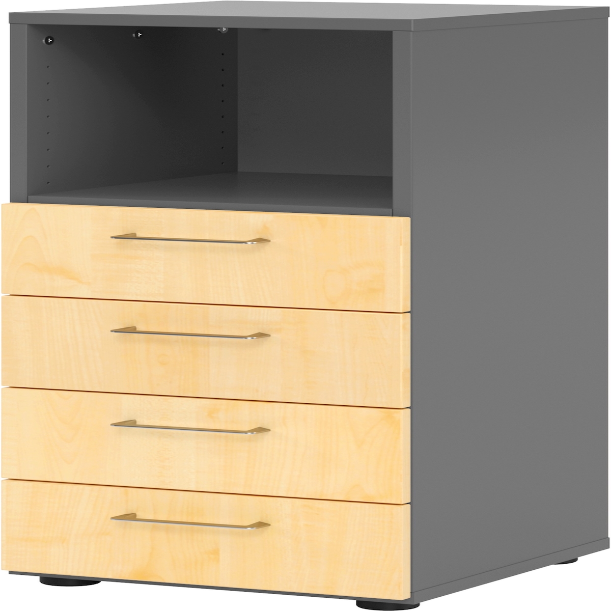 bümö smart Schubladenschrank, Büroschrank in Graphit/Ahorn mit 4 Schüben & 1 Regalfach - Bürocontainer aus Holz, Container mit Metallgriffen &