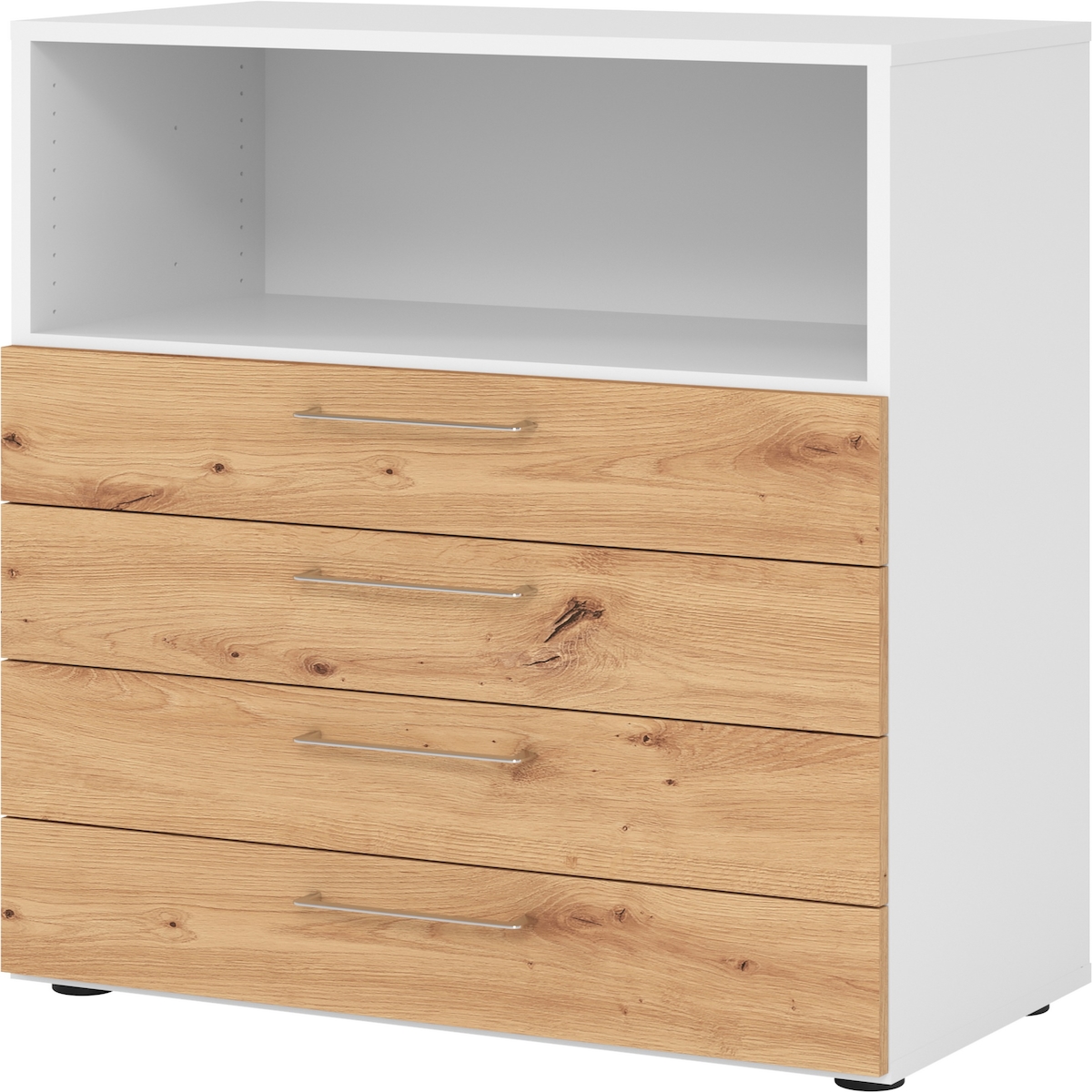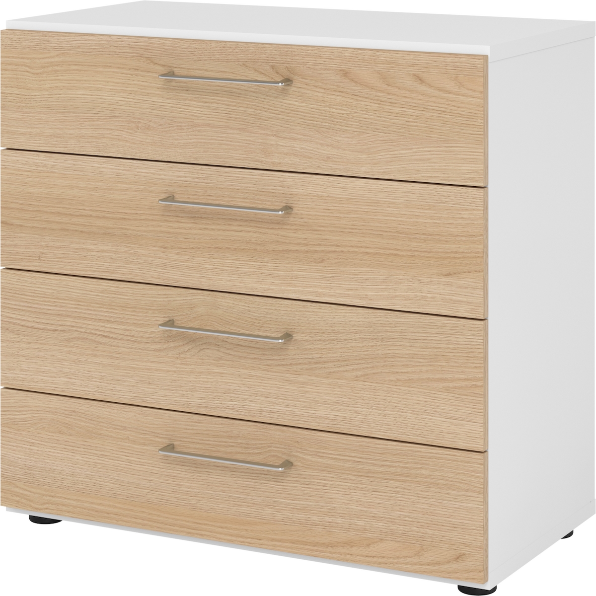 bümö smart Schubladenschrank, Büroschrank 80cm breit in Weiß/Eiche mit 4 Schüben - Bürocontainer aus Holz, Container mit Metallgriffen & Soft-Stop