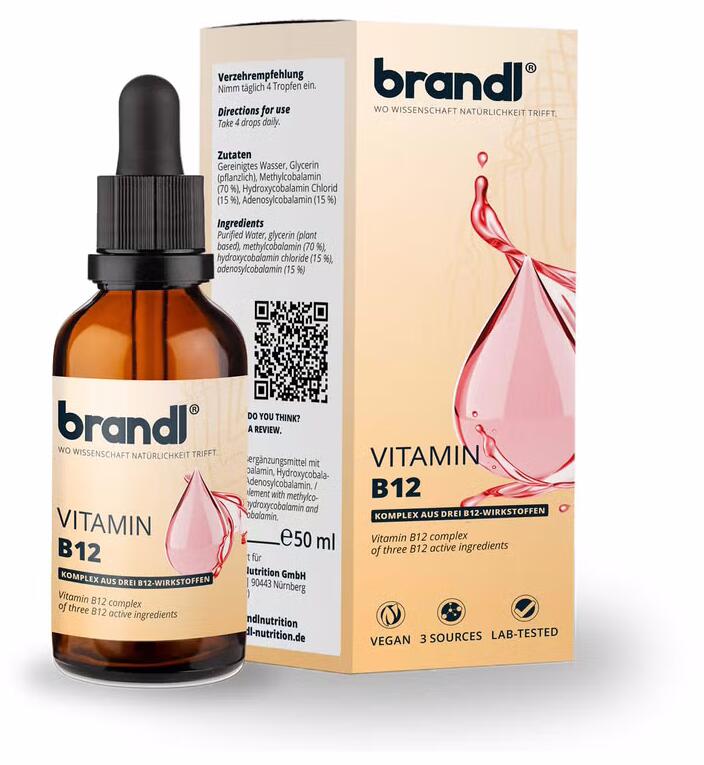 Brandl Nutrition B12 Vitamin Tropfen aus 3 Aktivformen 50 ml