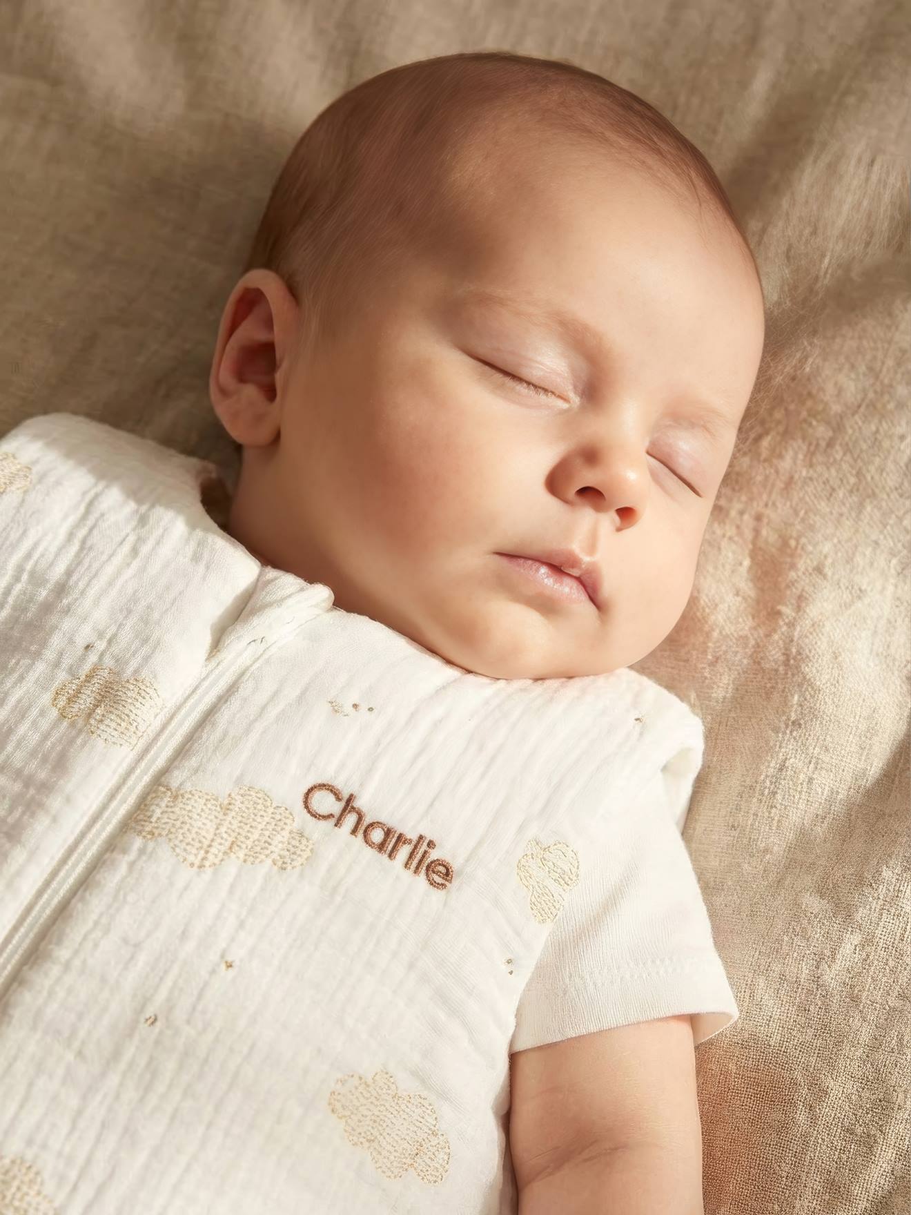 Ärmelloser Baby Schlafsack mit Recycling-Polyester IN DEN WOLKEN TOG 2,5, personalisierbar weiß Gr. 104 cm von vertbaudet