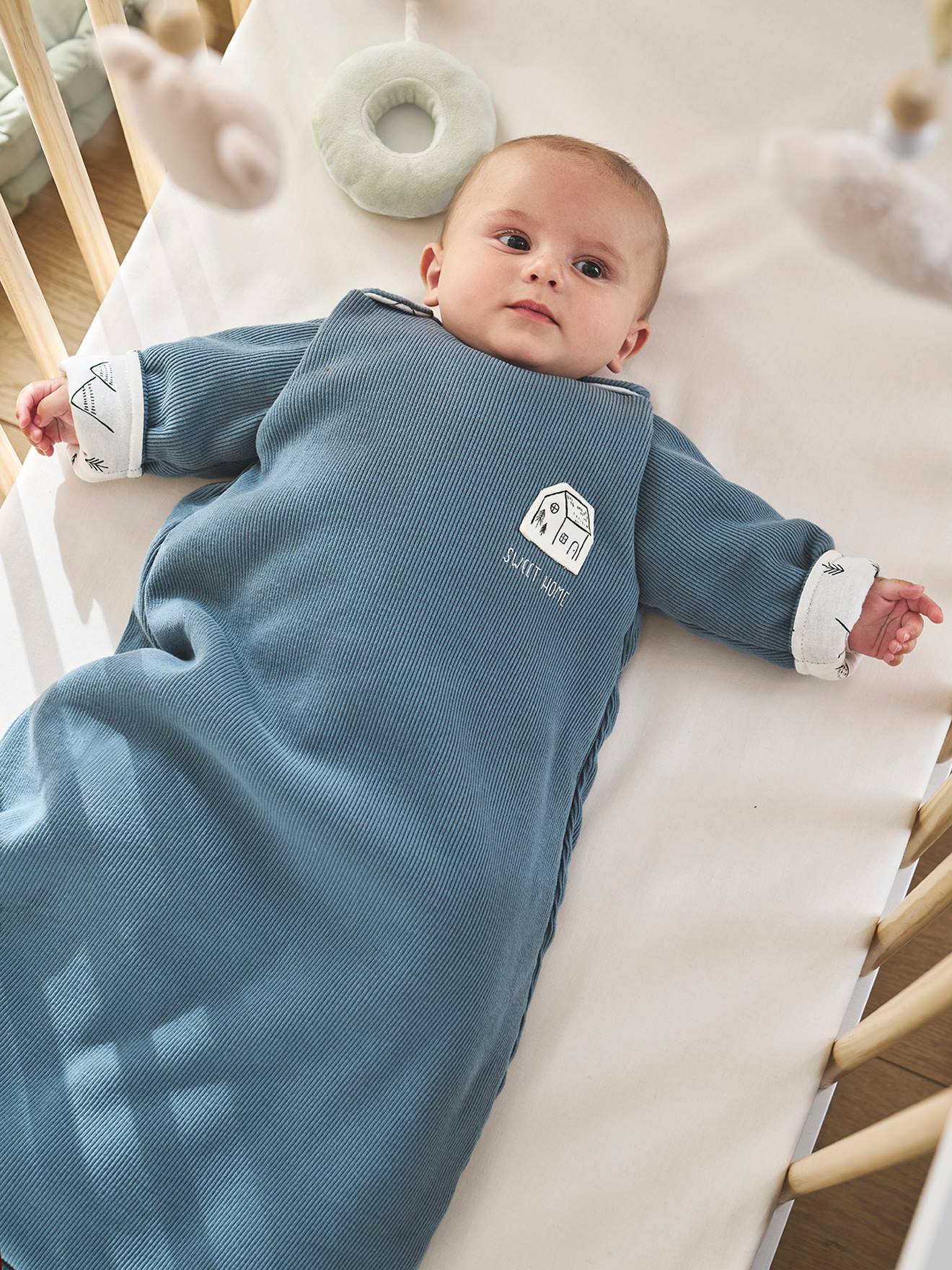 Baby Schlafsack mit langen, abnehmbaren Ärmeln HYGGE graublau Gr. 85 cm von vertbaudet