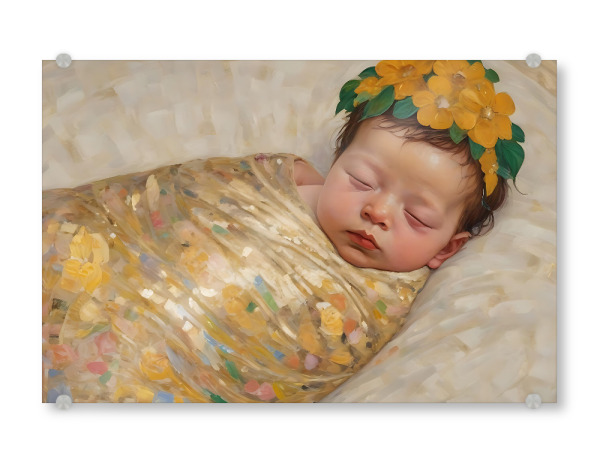 Acrylglasbild "Schlafendes Sonnenblumen Baby" artboxONE - Menschen,Für Mama - Sonnig,Baby,Geburt,Babyzimmer,Süß,Schlafen,Gustav klimt,Klimt