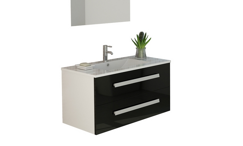 Bad-Set Waschbecken Waschtisch Unterschrank Bad Badezimmer Badzubehör Badezimmerausstattung Locarno in schwarz Hochglanz Badmöbel Set Jet-Line