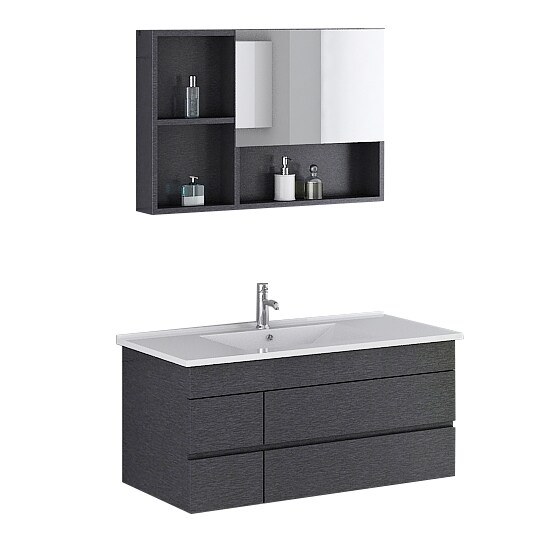 Badset Bern Holz dunkel Waschplatz Waschbecken Waschtisch Unterschrank Waschbeckenunterschrank Badezimmer Ausstattung Badezimmerausstattung Soft-Close
