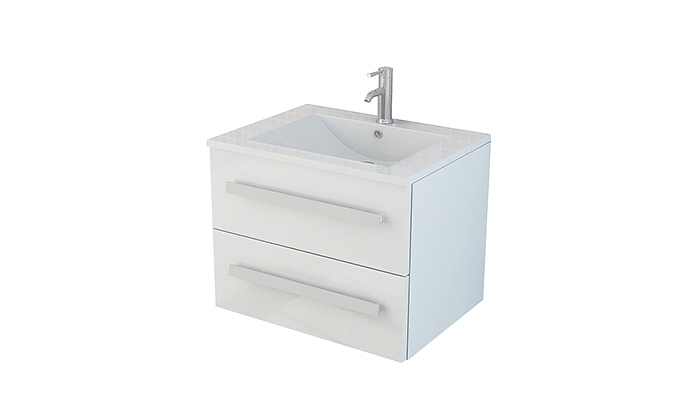 Bad-Set Waschbecken Unterschrank Waschtisch weiß Soft Close Badmöbel Badezimmerausstattung Badinventar Hochglanz Badezimmer Bad Arosa II Jet-Line