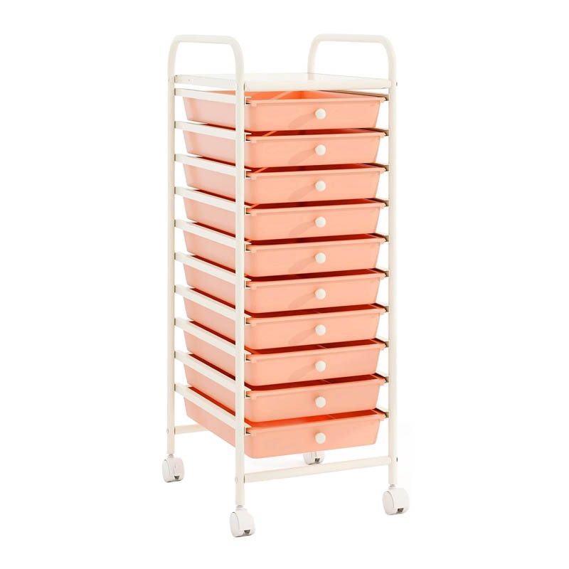 COSTWAY Rollwagen mit Schubladen Rollcontainer Badezimmerwagen Badezimmerwagen Badezimmerregal (Hellrosa)