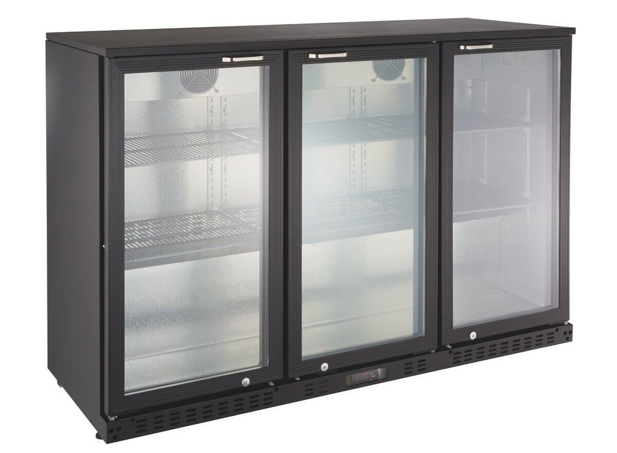 Schwarzer Barkühlschrank Mit 3 Glastüren, 298 Liter