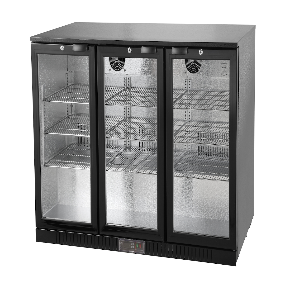 METRO Professional Barkühlschrank GBC3003, Aluminium / Glas, 135 x 53 x 86.5 cm, 308 L, Luftkühlung, 3-türig, schwarz