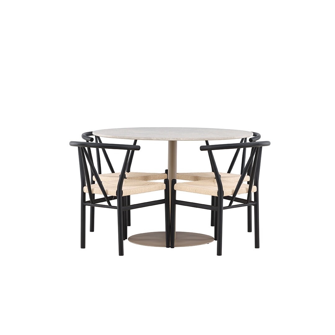 MALATA Tischset + 4 HEKA Stühle - Schwarzer Marmoreffekt und Beige