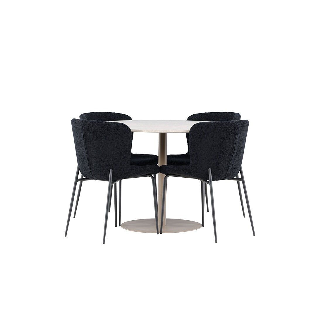 Ebuy24 Lycke Essgruppe Tisch Ø110cm und 4 Teddy Stühle beige.
