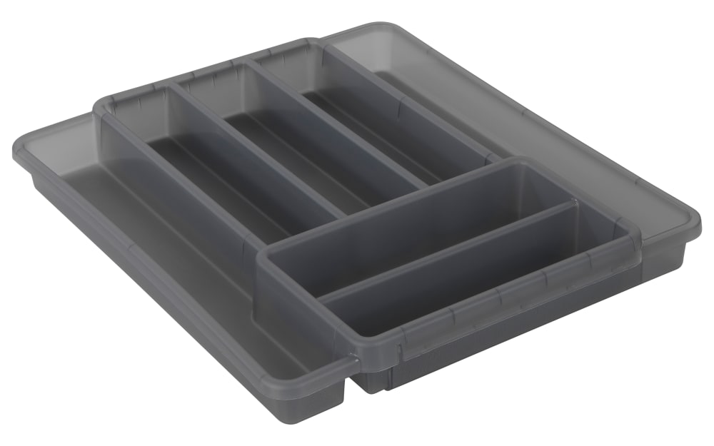 Erweiterbarer Besteckkasten mit 5-7 Fächern und Soft-Grip-Auskleidung
