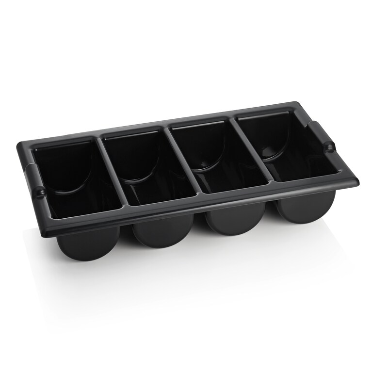 12x Besteckkasten GN 1/1 mit 4 Einteilungen, schwarz, Polyethylen