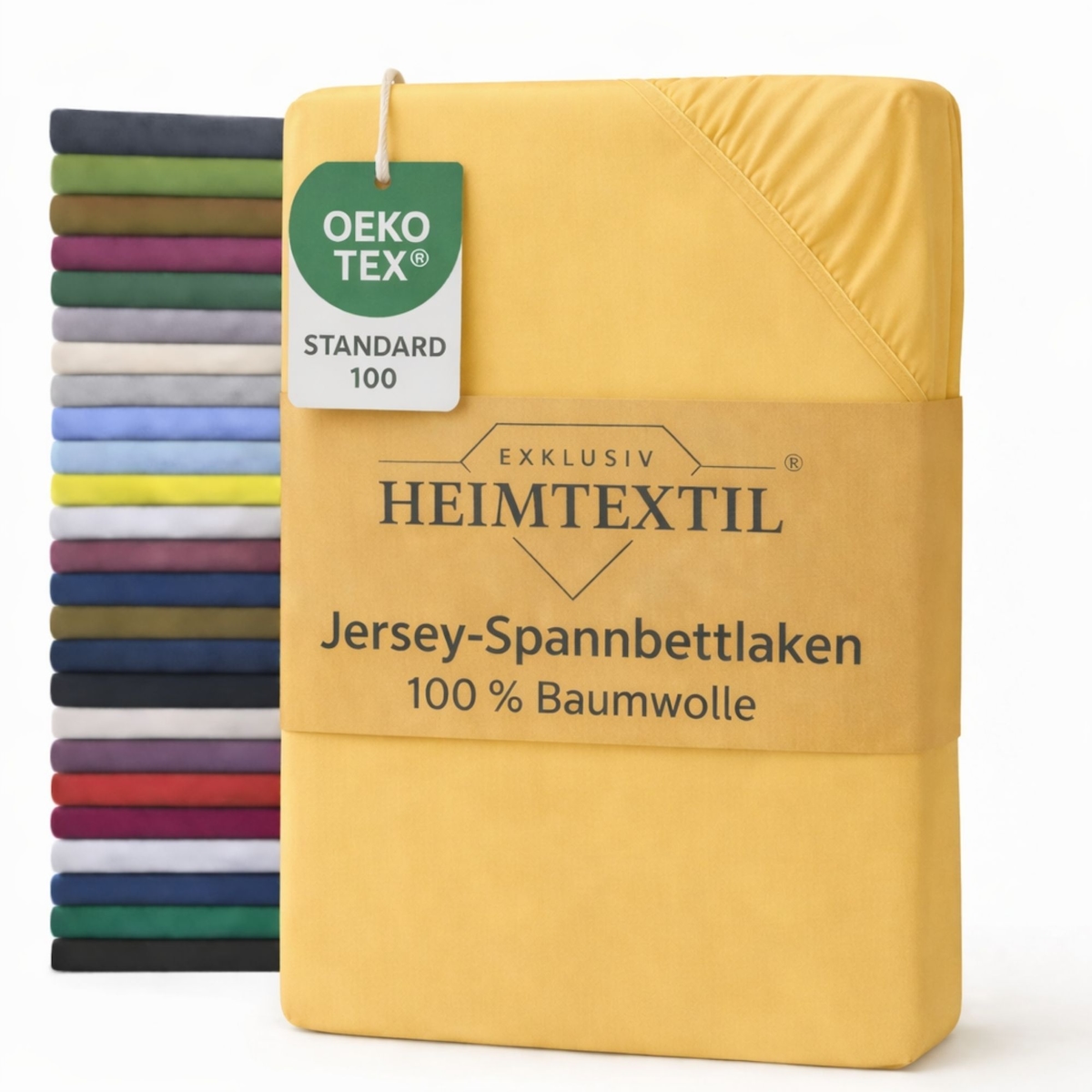 EXKLUSIV HEIMTEXTIL Marke Jersey Spannbettlaken 120 x 200 cm Gelb 100% Baumwolle Öko - Tex Zertifiziert Bed-Sheet Bettlaken Spannbetttuch Topper Leine