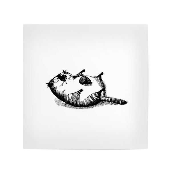 Poster 20x20 cm "Lazy Cat & Birds" artboxONE - Schwarzweiß,Stift & Papier,Illustration - Katze,Cat,Catcontent,Käfer,Rückenlage,Food