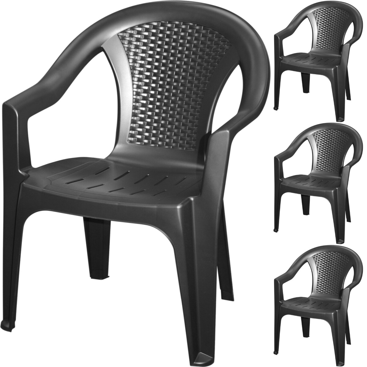 IPAE 4x Gartenstuhl Stapelstuhl Bistrostuhl Balkonstuhl Kunststoff Anthrazit 0260