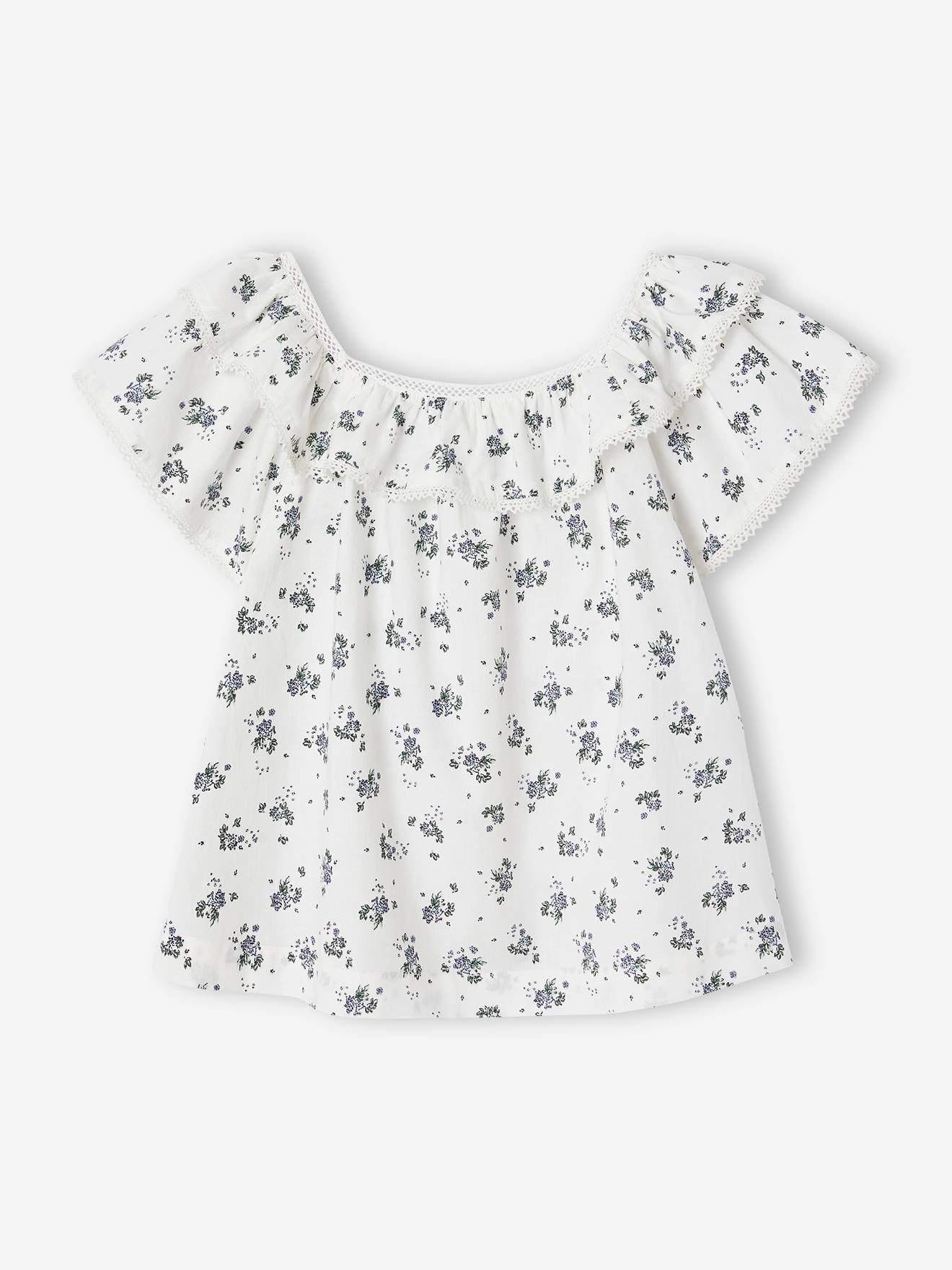 Mädchen Bluse mit Blumenmuster weiß Gr. 128 von vertbaudet