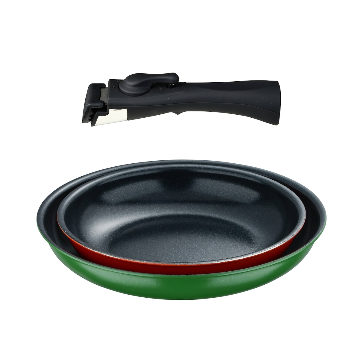 BERGNER Click&Cook - Set mit 2 Bratpfannen, Ø 22 Ø 26cm, aus gepresstem Aluminium mit abnehmbarem Griff