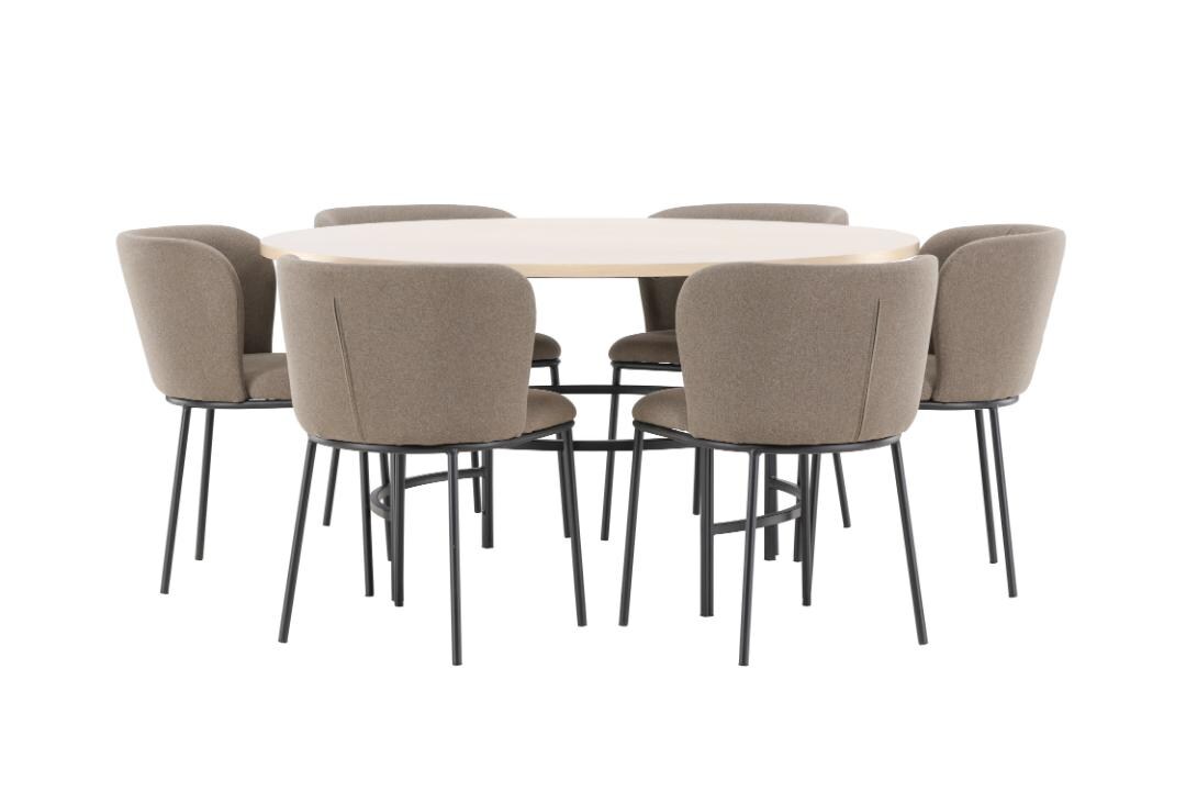 Ebuy24 Copenhagen Essgruppe Tisch Ø140cm und 6 Stühle whitewash, braun.