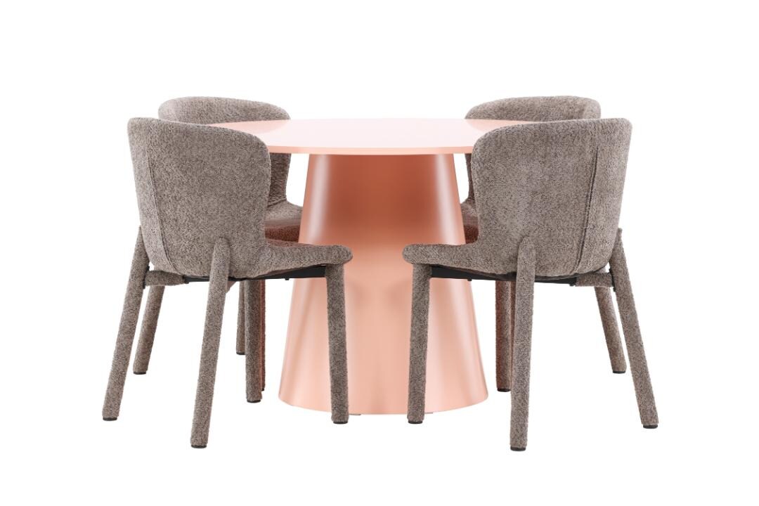 Olivia Essgruppe Tisch Ø110cm und 4 Boucle Stühle braun.