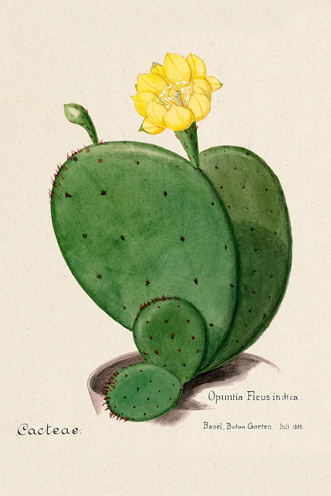 Artfilia Indian Fig Opuntia Cactus - Vintage Illustration Variante 1 13x18 cm