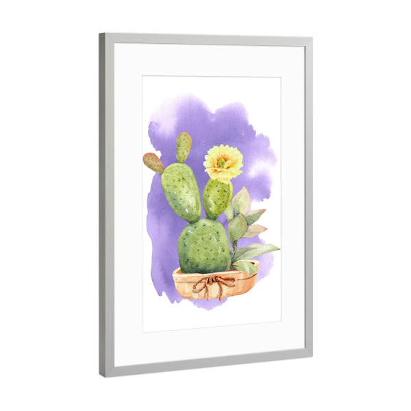 Poster mit Rahmen Silber "Kaktus mit gelber Blüte" artboxONE - Natur,Floral - Blume,Blüte,Kaktus,Topf,Pflanze,Plant,Cactus,Succulent,Floral