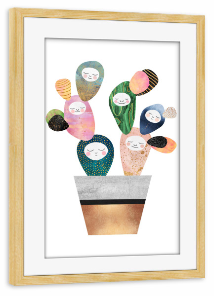 Poster mit Rahmen kiefer "Sleepy Cactus" artboxONE - Marmor - Cactus,Plant,Colorful,Cute,Kids,Childrens,Nursery,Kids room,Childrens room,Sleepy,Sleep