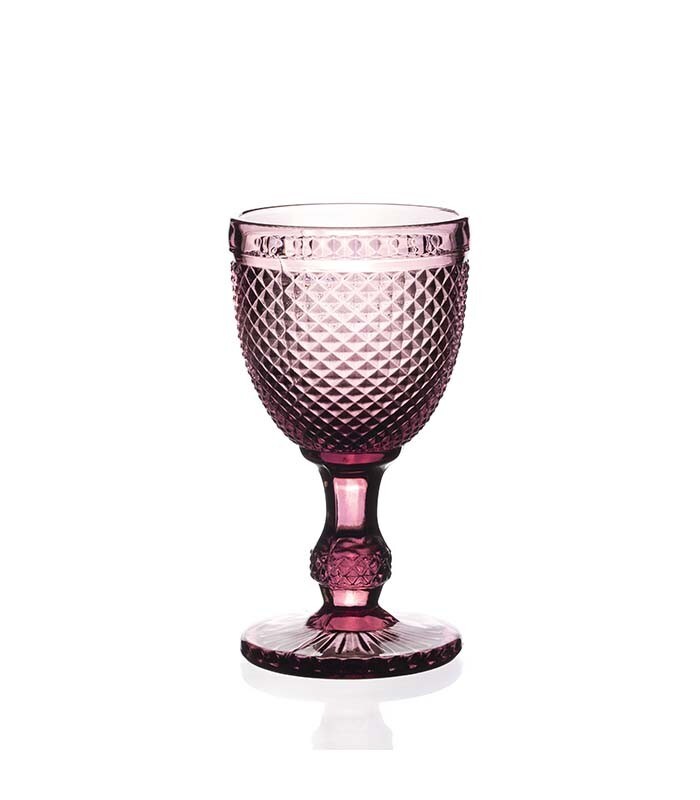 Copo de cristal rosa vintage com relevo 30cl (6 unidades)