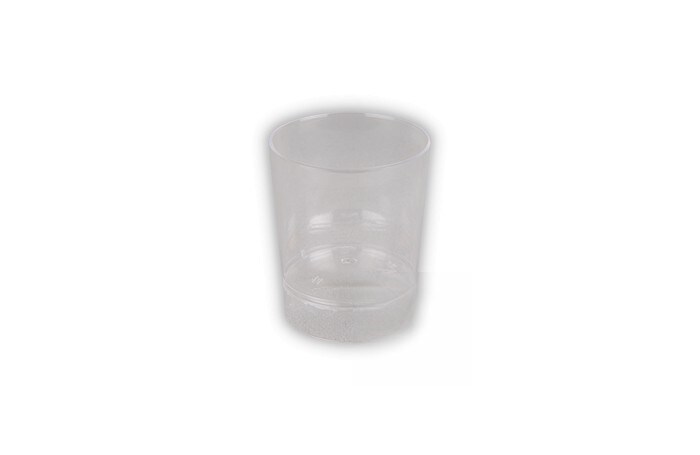 Rolha e/ou copo de 50 cc com acabamento perfeito (sem arestas) em plástico rígido transparente e resistente. Modelo: VTP005