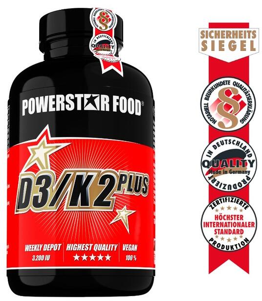 Powerstar Food D3 / K2 PLUS Calcium & Magnesium, 120 Kapseln