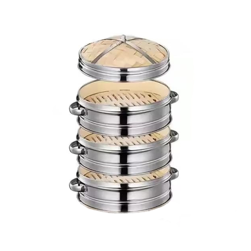 3-stöckiger Dampfgarer Ø 20 cm mit Deckel aus Edelstahl und Bambus
