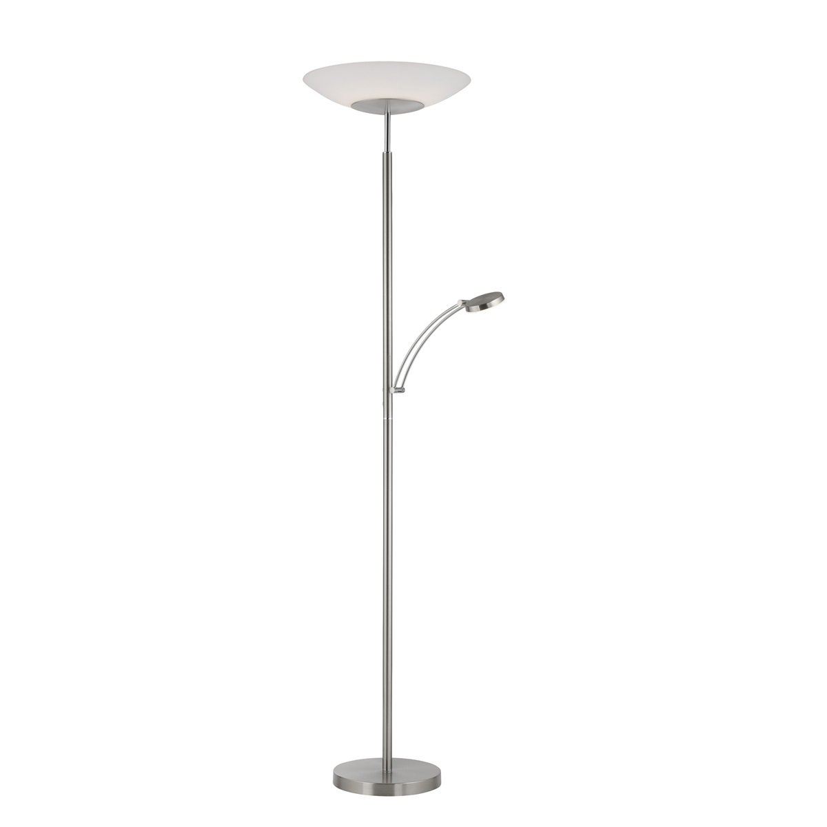 GKS Knapstein LED-Deckenfluter ALMA (mit Lesearm) Nickel matt/Chrom glänzend/Opalglas weiß 41.962.19