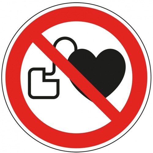 Kein Zutritt für Personen mit Herzschrittmachern oder implantierten Defibrillatoren Symbol Schild A5 Rückseite selbstklebend