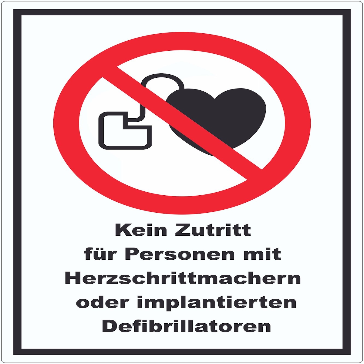 HB-Druck Kein Zutritt für Personen mit Herzschrittmachern oder implantierten Defibrillatoren Schild A0 Rückseite selbstklebend
