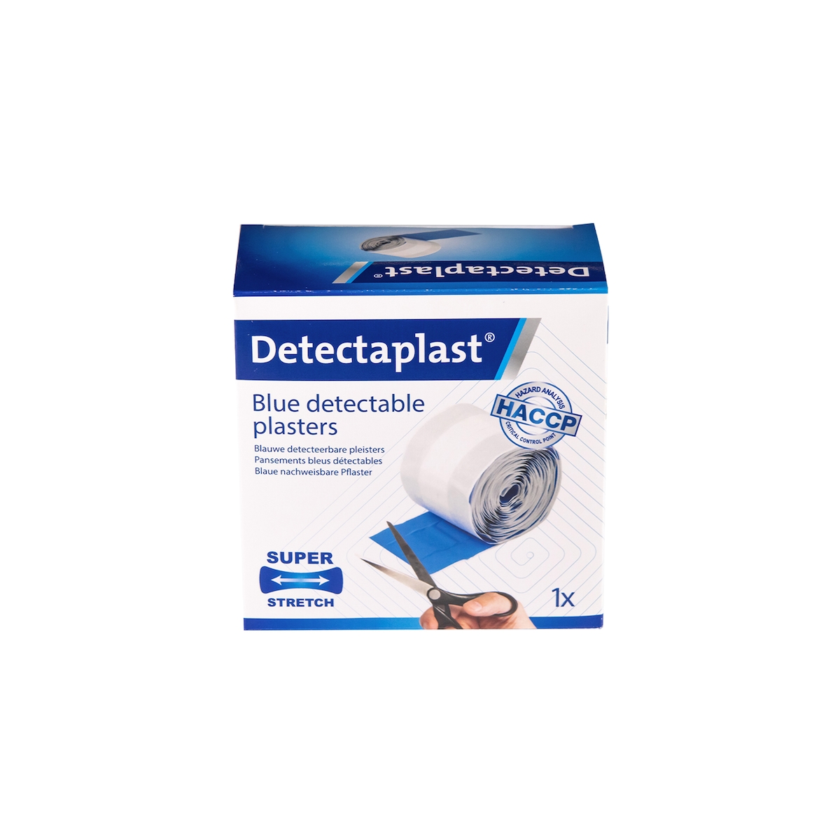 Detectaplast Spender mit blaues detektierbares Super Stretch Pflaster 180x20mm - 50 St