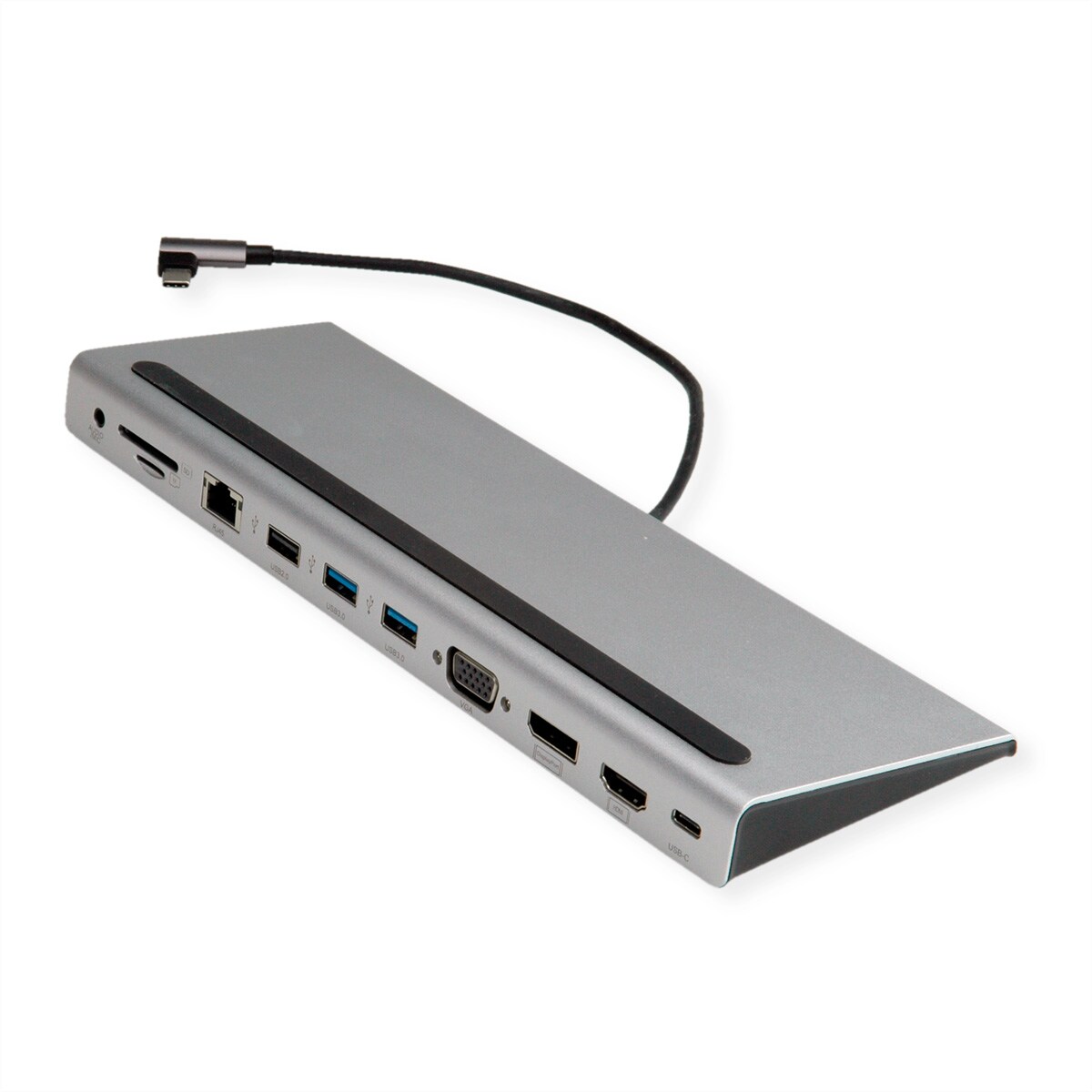 VALUE USB 3.2 Gen 2 Typ C Multiport Docking Station, 4K HDMI/DP, VGA, USB, Card Reader, PD, LAN, Audio