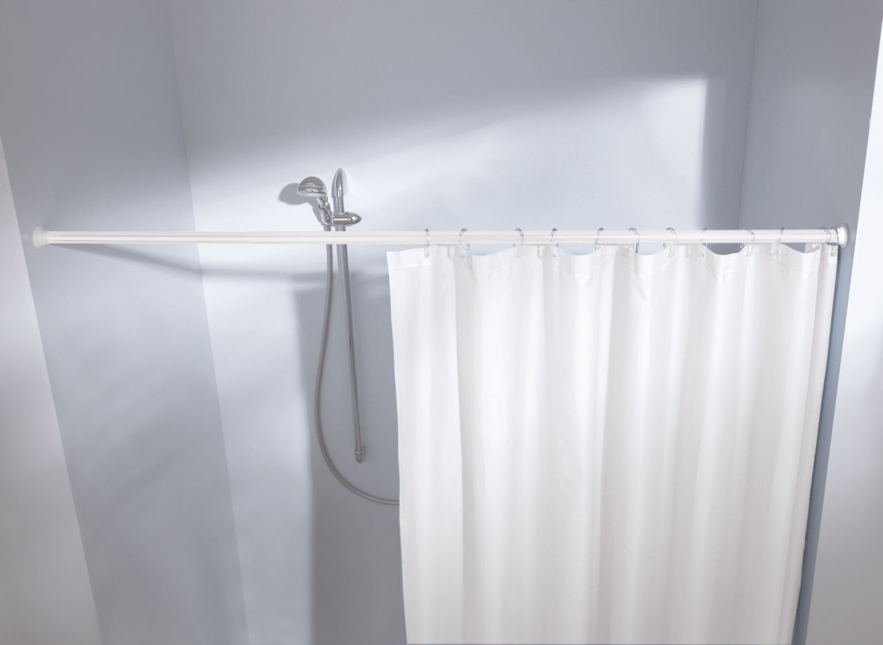 WENKO Teleskop-Duschvorhangschiene Mod. Era ausziehbare Aluminium Schiene für Duschvorhänge inklusive bohrenfrei 125-210 x 2 x 3,5 cm Weiß