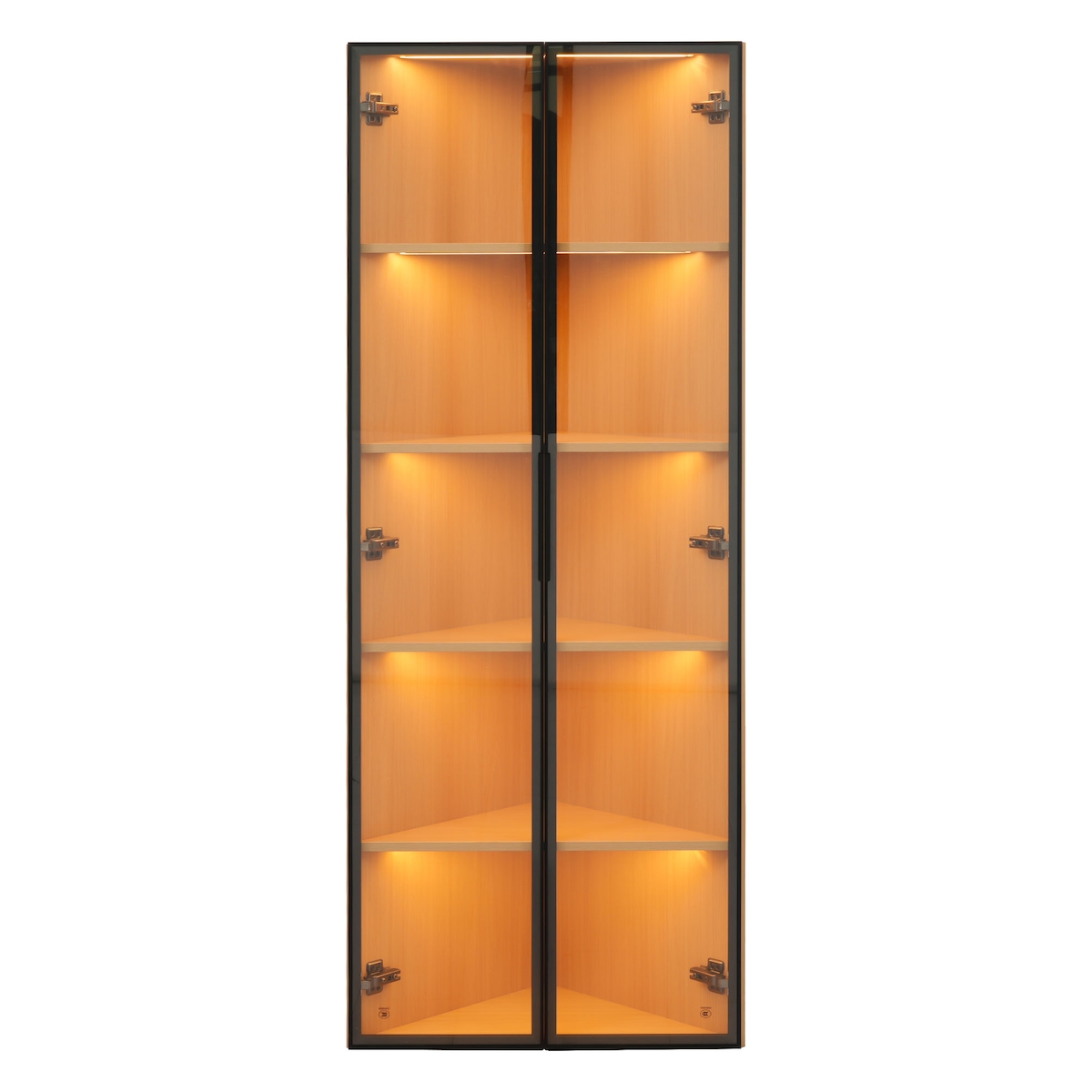 Eckvitrine Glasvitrine 62x35x160 LED Beleuchtung Soft-Close Sicherheitsglas MDF Eiche Eckschrank Vitrinenschrank Eiche