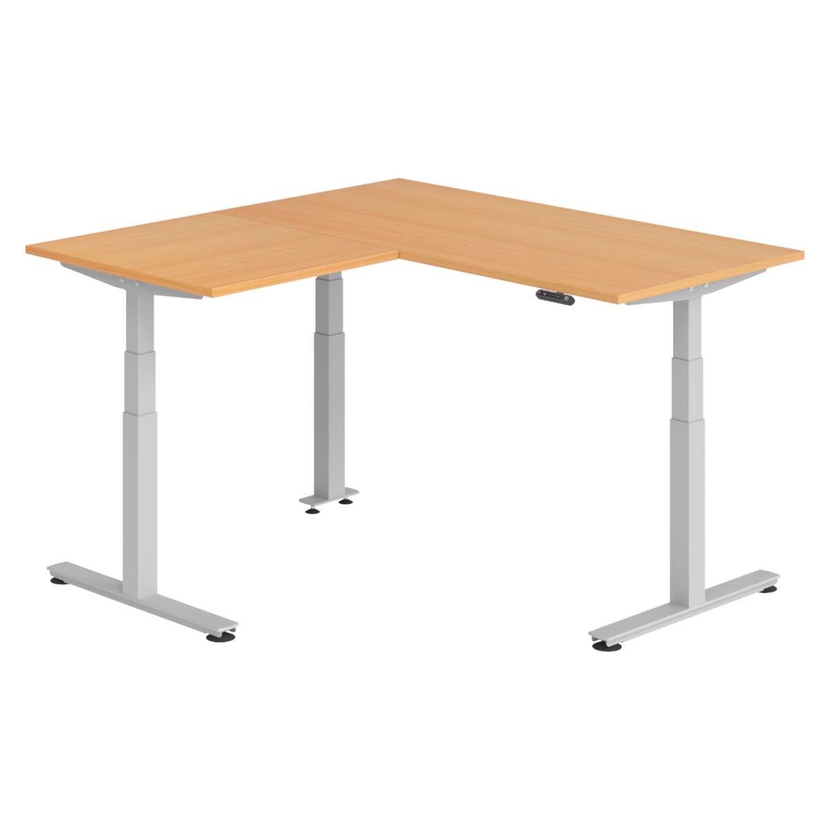 bümö Eckschreibtisch elektrisch höhenverstellbar L-Form: 160 x 160 cm in Buche, Gestell silber - Stehschreibtisch mit Memory-Steuerung, elektrischer