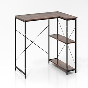 COSTWAY L-förmiger Schreibtisch, umkehrbarer Eckschreibtisch mit verstellbarem Regal & Metallrahmen, Holz-Computertisch, Bürotisch