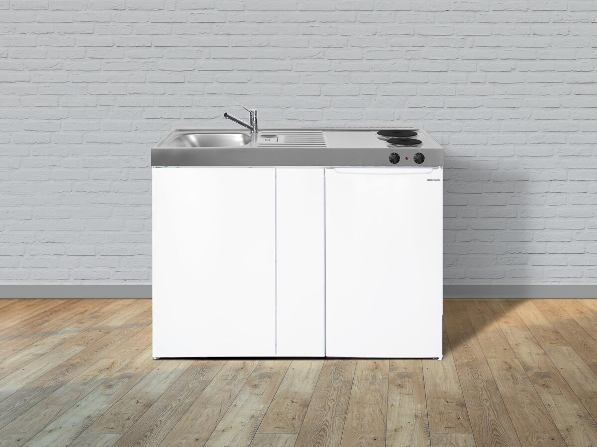 Stengel ME 120 Miniküche, 120cm breit, mit Elektrokochfeld, Kühlschrank mit Gefrierfach, Spüle links, weiß (14120 000023 00)